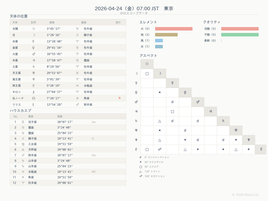 ãèªçæ¥ã®æåº§ã ãã§ãªããææåº§ãæ°Žææåº§ãã¢ã»ã³ãã³ã(Asc)ããããŠMCã
