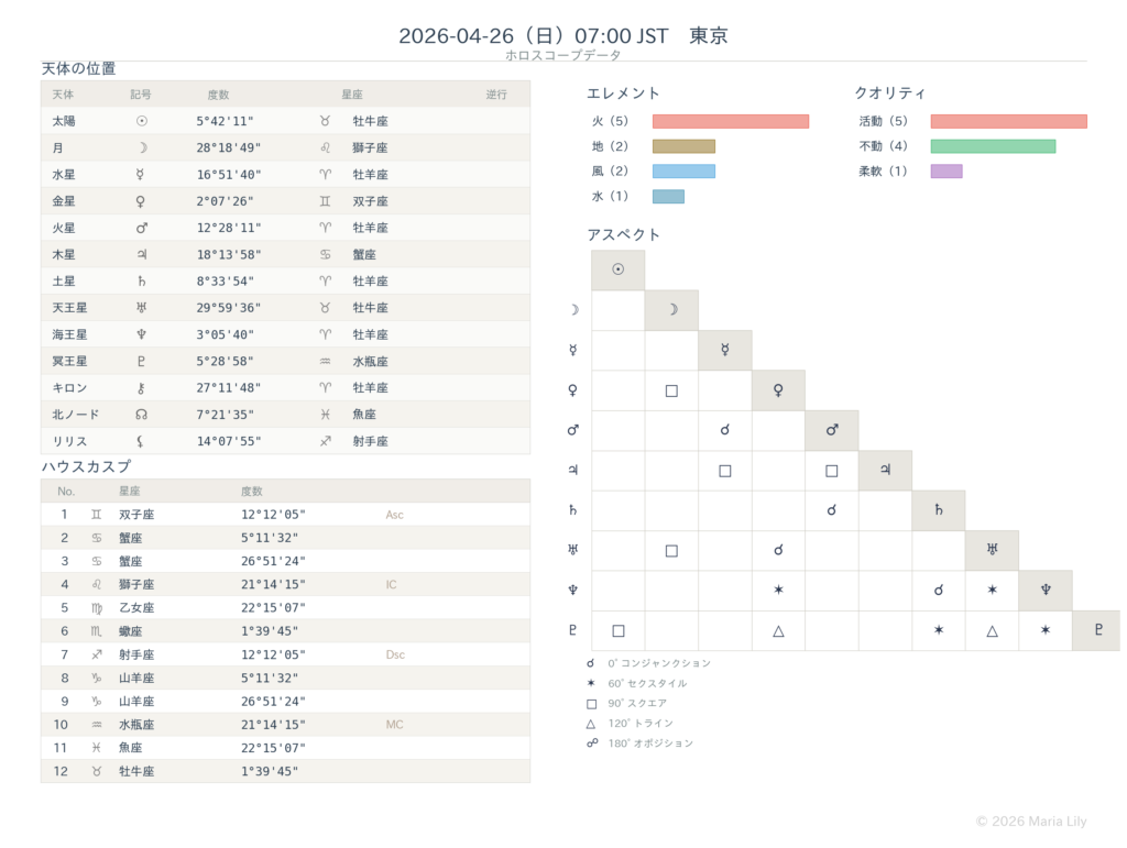 ãèªçæ¥ã®æåº§ã ãã§ãªããææåº§ãæ°Žææåº§ãã¢ã»ã³ãã³ã(Asc)ããããŠMCã