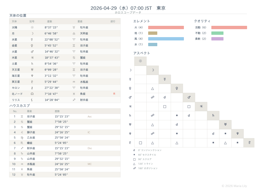 ãèªçæ¥ã®æåº§ã ãã§ãªããææåº§ãæ°Žææåº§ãã¢ã»ã³ãã³ã(Asc)ããããŠMCã
